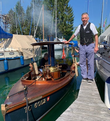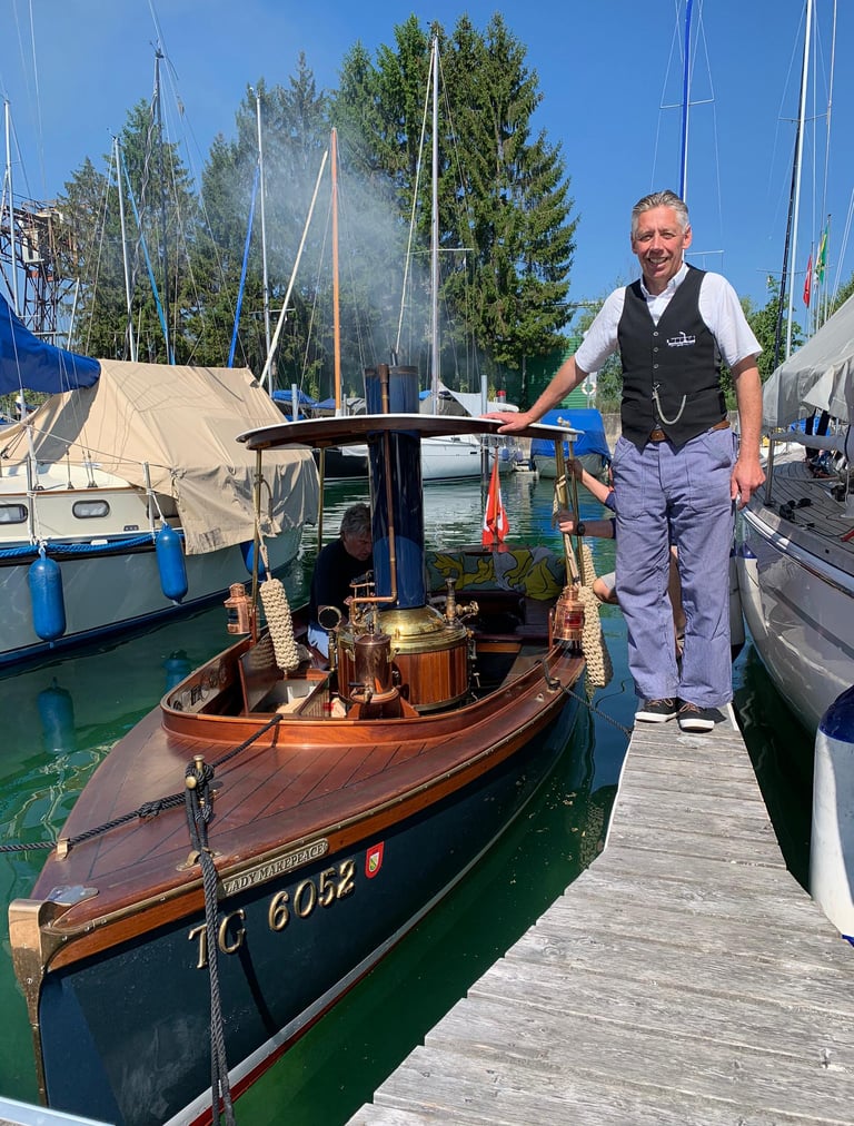 Die „Lady Makepeace“ ist nicht nur ein Boot, sondern eine Herzensangelegenheit und mit ihrem Baujahr 1990 das jüngste, in der Schweiz registrierte SL Dampfboot. SL steht dabei für Steam Launch, eine Art von eleganten kleinen Dampfbooten, deren historische Heimat im englischen Lake District liegt. Mehr über das Boot erfahren im technischen Teil der Webseite.